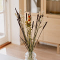 Giv dit hjem et strejf af evig elegance med Evighedsbuket Morgenfrue – en harmonisk sammensætning af tørrede blomster, der står smukt i op til 12 måneder uden vand eller pasning.