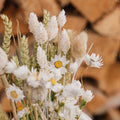 Giv dit hjem et strejf af naturlig ro med Evighedsbuket Natur – en let og luftig sammensætning af tørrede hvide Helichrysum-strå og friske grønne kornspirer, der står smukt i op til 12 måneder uden vand eller pasning.